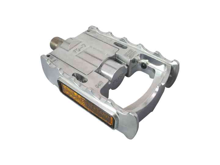 アルミボディ&プレートの高強度折りたたみ両面踏みペダル。独自構造で高耐久性を実現。ボタンひとつで簡単に折りたたみできる為、小径車や輪行におすすめ。力の伝達効率の良いロープロファイル設計の両面踏みタイプ。ゴミや砂などが入りにくくなるようにカバー/シーリングしたシールドメカニズムを採用。リフレクター付き輪行、街乗り
